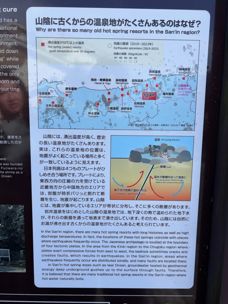 こう見ると、山陰地方には好みの硫黄系の温泉はないが、それなりに温泉が多い。この地図も興味深い。明日はどこの温泉を巡ろうかと思い、この看板を撮影しました。ちょっと遠いけど西側の三瓶温泉とか千原温泉も興味あり。