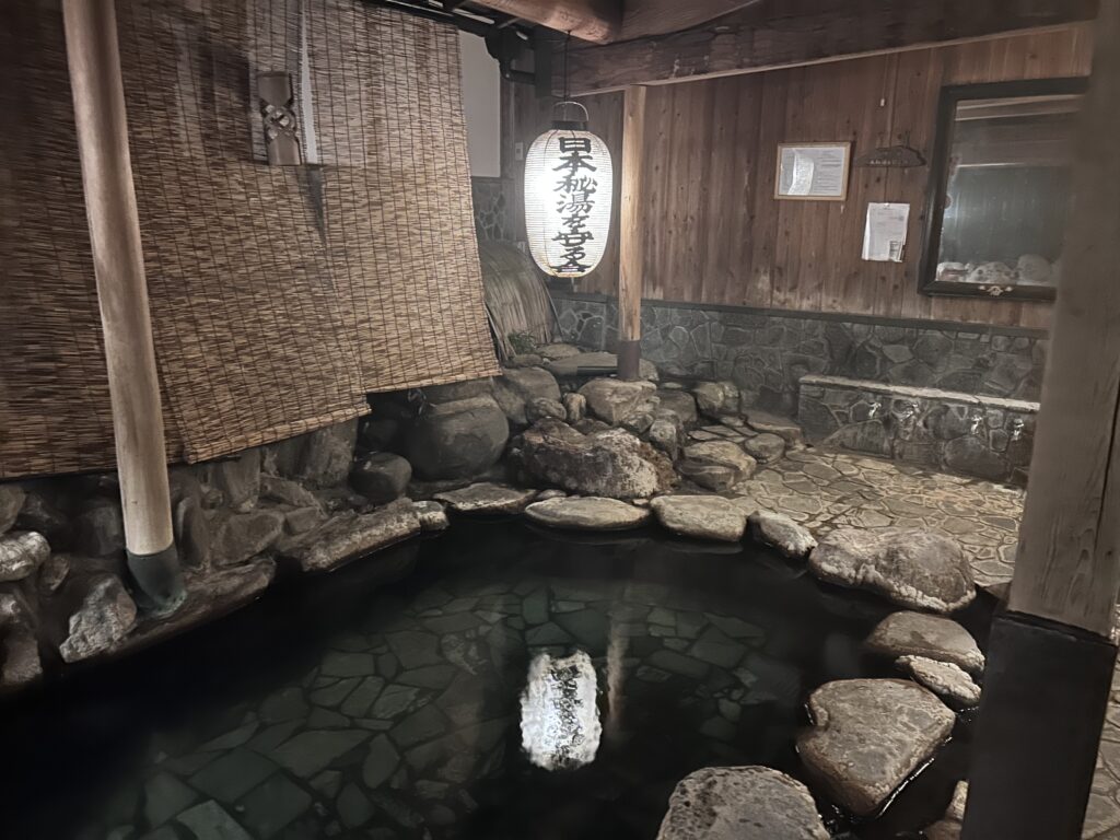 ところで岩井温泉には「湯かむり」という独特の入浴法が伝わっており、柄杓で湯を頭からかぶることで、全身を清めるという風習があるそうですが、やってみようかと思ったけど、なんか“湯に潜る=マナー違反”という謎の思い込みが邪魔をした。誰もいなかったし、やればよかった。次回こそ、正々堂々と誰がいるときにやってみよう!