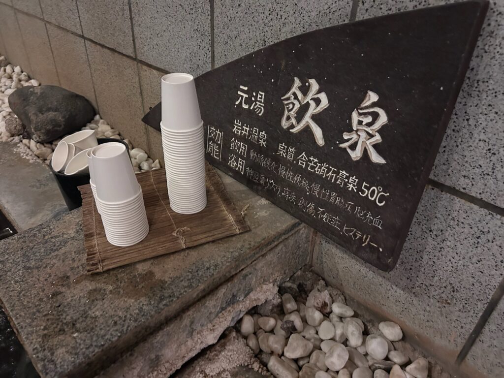 飲泉。これ飲んだら、ほんと腸にもよさそうって感じがします。